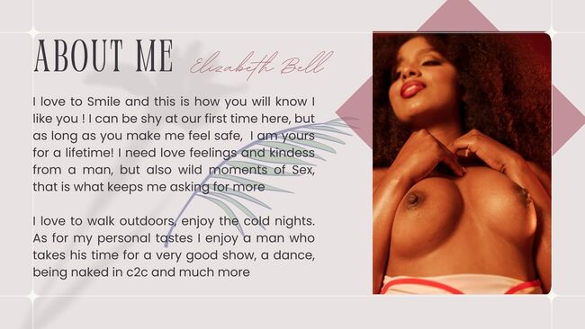 Poți SOLICITA O ÎNTÂLNIRE cu ElizabethBell atunci când îți este convenabil. Totul este în fusul tău orar, în orele tale locale. Ea va primi solicitarea ta și o va accepta dacă programul ei este liber. Vei primi o confirmare prin email și te poți pregăti pentru experiența ta incitantă.