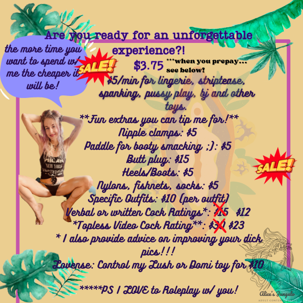 I've had some great sessions with Alice. Sexy, sensual and very hot. Love her style and she brings it hard when I need it. Highly recommend.