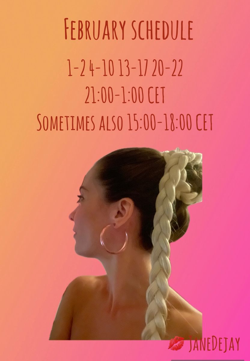 You can ASK FOR A DATE with JaneDejay at your convenience. Everything is in your timezone, your local hours. She will receive your request and accept it if her schedule is free. You will receive a confirmation via email and you can prepare for your hot experience.